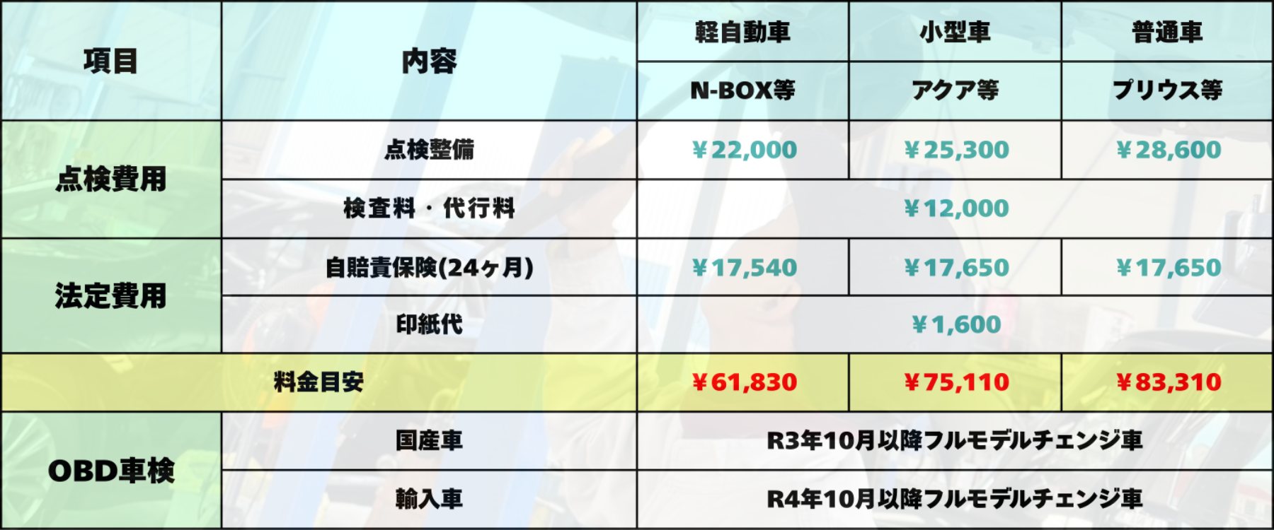 ※車整備・特種整備は別途料金となります。(タイミングベルト・ドライブシャフト等)